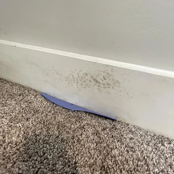 SPOTS OR PATCHES IN DAMP AREAS LIKE BATHROOMS, BASEMENTS, OR AROUND LEAKS